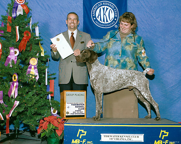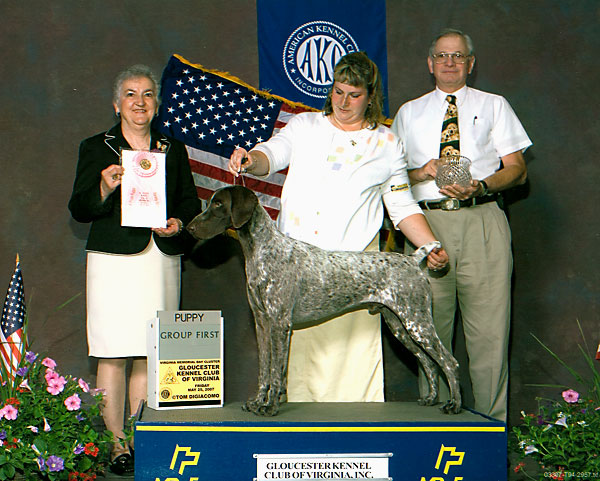 Alex goes Best of Opposite Sex to Best of Breed at the Mason Dixon GSPC Specialty at just 15 months of age over numerous Group Winning Specials under Judge Bob Slay. |